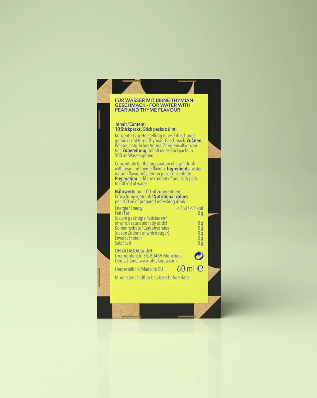 Naudojimas: Vienoje pakuotėje yra 10 patogių lazdelių, kiekviena po 6 ml. Įpilkite vienos lazdelės turinį į maždaug 500 ml vandens. Koncentratas akimirksniu ištirpsta, nereikia maišyti ar purtyti. Gėrimas paruoštas per kelias sekundes. Naudokite daugiau ar mažiau vandens pagal norą, kad pasiektumėte tinkamą skonio stiprumą.