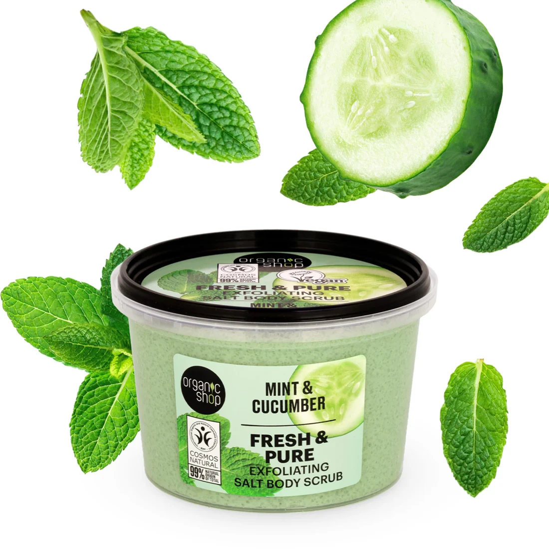 Kūno šveitiklis, praturtintas ekologiškomis pipirmėčių ir agurkų ekstraktais, suteikia odai gaivinantį, drėkinantį ir glotninantį poveikį.