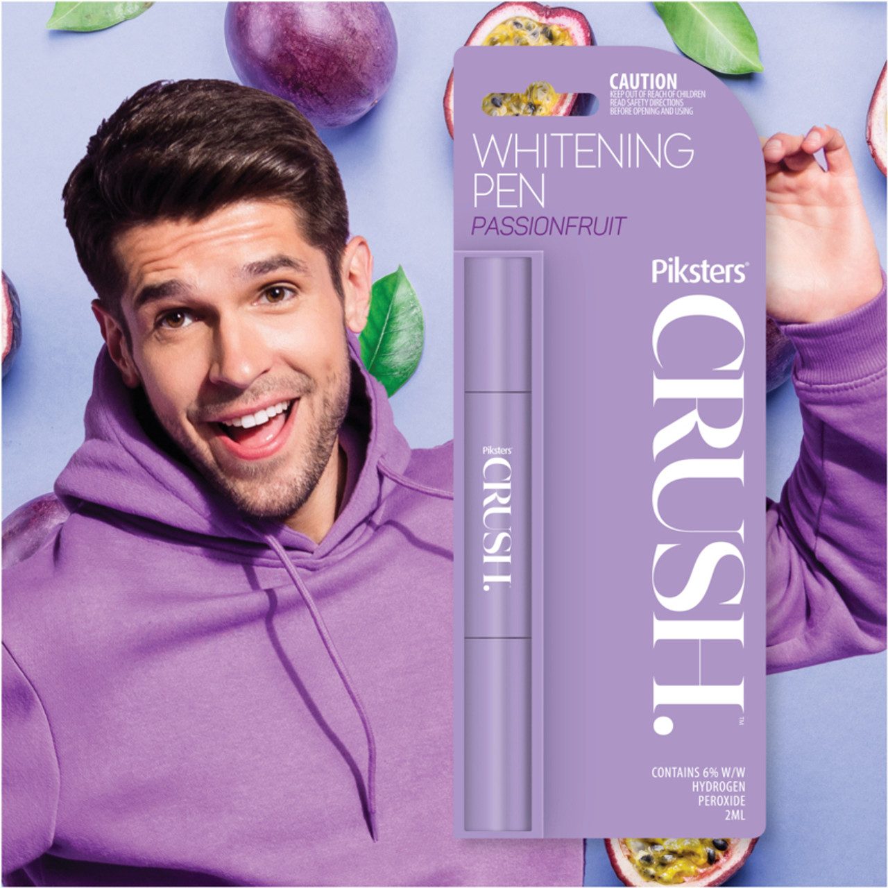 Dar labiau pamilkite savo šypseną su Piksters® CRUSH® pasiflorų skonio balinamąja pieštuku – greitu, patogiu ir švariu būdu balinti dantis. Džiaukitės ryškesne šypsena su švelniu bei maloniu poskoniu.
