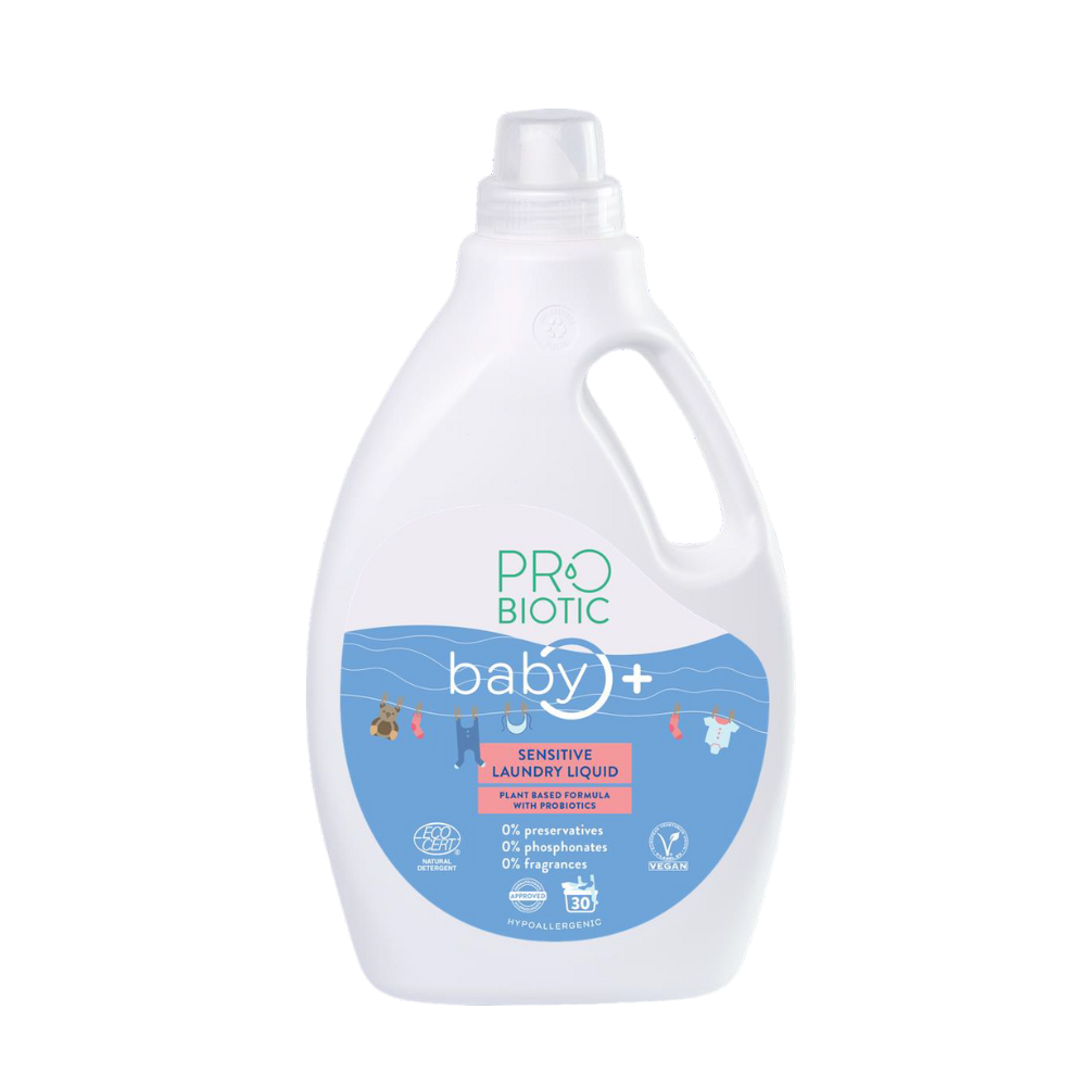 Skalbimo gelio užtenka 30 skalbimų ir jame yra probiotinių bakterijų, kurios rūpinasi jūsų skalbiniais ir jautria oda. Produktas sukurtas kūdikių drabužėliams skalbti, tačiau taip pat tinka visos šeimos skalbiniams.