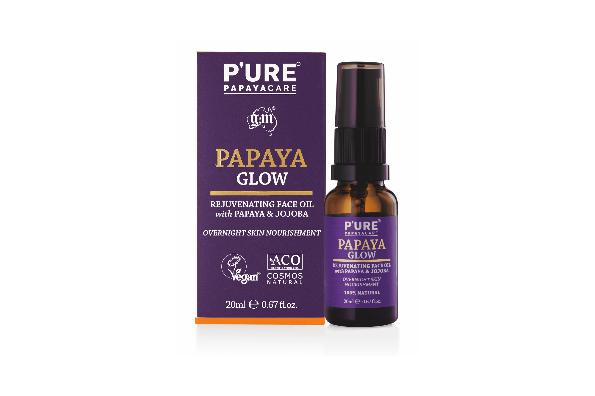 P’URE Papayacare Papaya Glow atstatomasis veido aliejus su papajos ekstraktu švelniai eksfoliuoja ir maitina odą per naktį. Papaya Glow stimuliuoja odos regeneraciją, padeda šviesinti, atkurti ir maitinti veido odą išskirtiniu papajos ir jojobos aliejų deriniu. P’URE Papayacare Papaya Glow atstatomasis veido aliejus tinka visų tipų odai, yra nekomedogeninis (neužkemša porų). Idealiai tinka odos atnaujinimui per naktį. Sudėtyje nėra naftos produktų, parabenų, sulfatų, dirbtinių dažiklių ar kvapiklių.