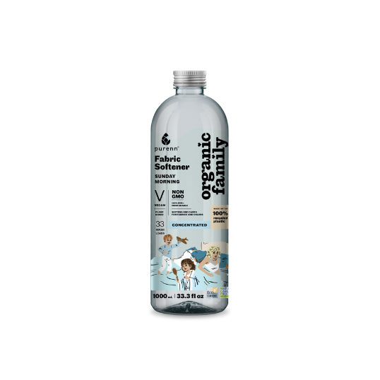 Purenni 100% biologiškai skaidus ir natūralus skalbinių minkštiklis pašalina audinių elektrinimąsi ir suteikia drabužiams malonų minkštumą.