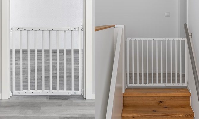 Varteliai tvirtai pritvirtinami prie sienos varžtais, užtikrinant stabilumą ir patvarumą net aktyviai judant vaikui. Puikiai tinka laiptų viršui ir apačiai, kur ypač svarbus saugus tvirtinimas ir laisvas judėjimas be paslydimo rizikos.