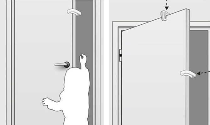 • Lengvas montavimas – nereikia klijų, varžtų ar įrankių, tvirtai uždedamas ant durų