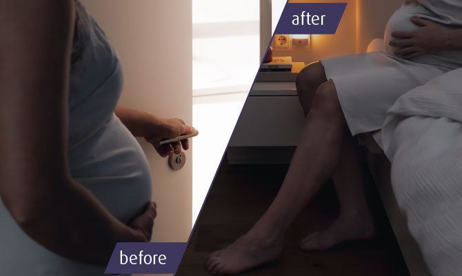 Nuo šeštos nėštumo savaitės daugelis moterų dažniau lankosi tualete naktį. Ryški lubų šviesa gali visiškai pažadinti jus ir kitus šeimos narius. Reer Mama naktinė lempa siūlo sprendimą – švelni ir šilta šviesa (1500K), leidžianti orientuotis tamsoje netrikdant miego.