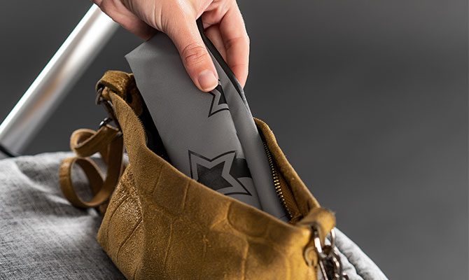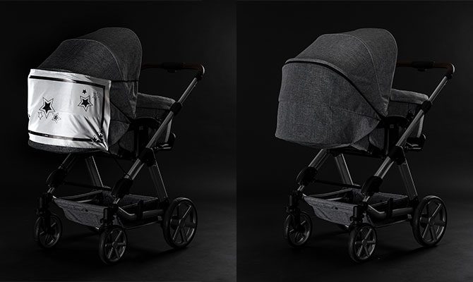 Naktį, lietuje ar rūke pėstieji dažnai tampa nematomi automobiliams iki pat paskutinės akimirkos. „reer“ vežimėlio atšvaitinė apsauga padeda padidinti jūsų ir vaiko matomumą eisme, sumažindama nelaimingų atsitikimų riziką.
