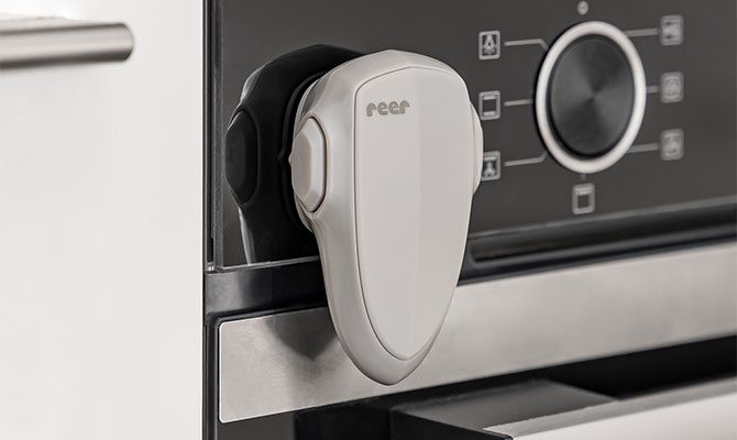 Kai vaikai pradeda ropoti ir vaikščioti, orkaitės durelės tampa patrauklia vieta tyrinėjimams – žema rankenėlė, viliojantys kvapai ir švytinti lemputė juos traukia. REER orkaitės apsauginė spyna vaikams padeda užkirsti kelią tam, kad mažylis tyliai neatidarytų orkaitės durelių, taip apsaugodama jį nuo pavojingų nudegimų ir karštų daiktų nukritimo.