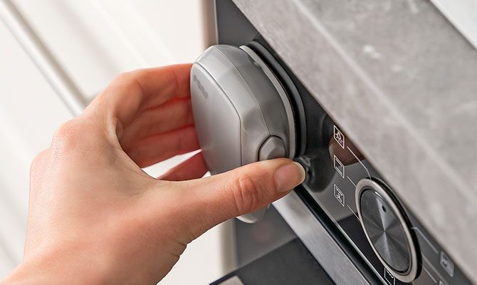 Spyna greitai ir lengvai tvirtinama – tereikia nuimti apsauginę plėvelę ir užklijuoti užraktą ant orkaitės. Karščiui atsparūs 3M VHB lipdukai užtikrina tvirtą sukibimą net esant aukštai temperatūrai. Kai spynos nebereikia, ją galima nuimti be žymių ar pažeidimų.