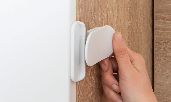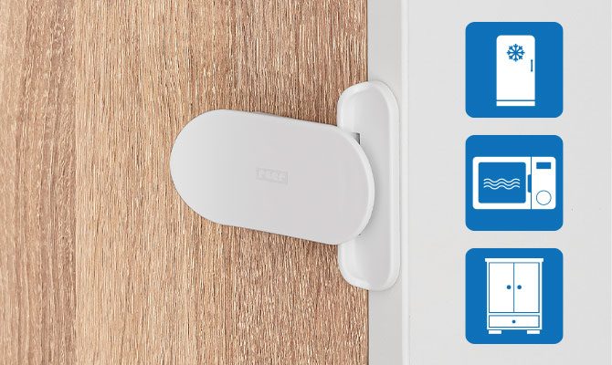 – Apsauga nuo vaikų atidarymo šaldytuvui, mikrobangų krosnelei, stumdomoms durims ir kt.