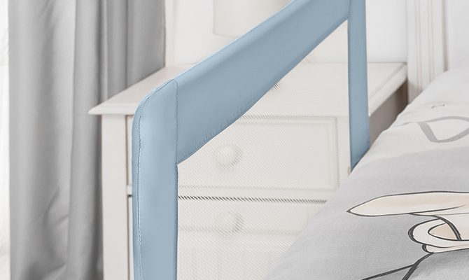 Papildomas turėklo aukštis (50 cm) suteikia geresnę apsaugą net ir storoms iki 30 cm čiužiniams. Platus ir stabilus pagrindas užtikrina, kad turėklas tvirtai laikytųsi savo vietoje ir neslystų. Minkštas, nešnarantis nailono užvalkalas garantuoja vaikui patogumą ir saugumą, taip pat papildomai apsaugo nuo skausmingų smūgių.