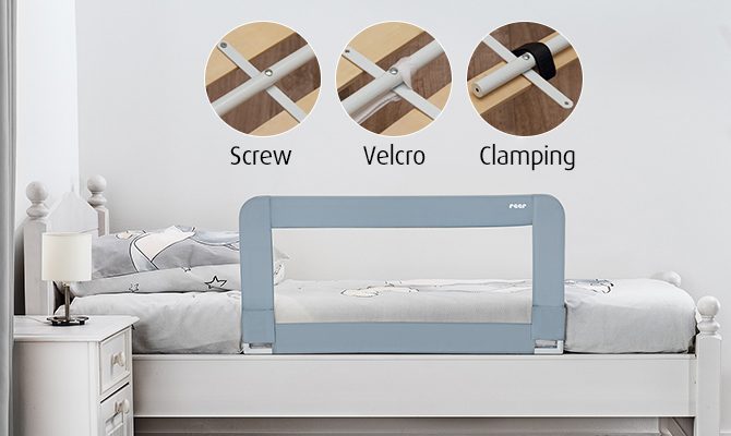 Turėklas gali būti pritvirtintas prie lovos trimis būdais: prisukant atramines kojas prie lovos rėmo, pritvirtinant prie grotelių reguliuojama „Velcro“ juostele arba įtempiant su komplekte esančiu diržu. Šie sprendimai garantuoja saugų ir stabilų pritvirtinimą, kuris neleidžia turėklui pasislinkti, nuvirsti ar iškristi.
