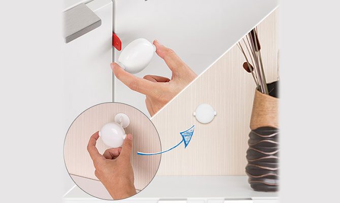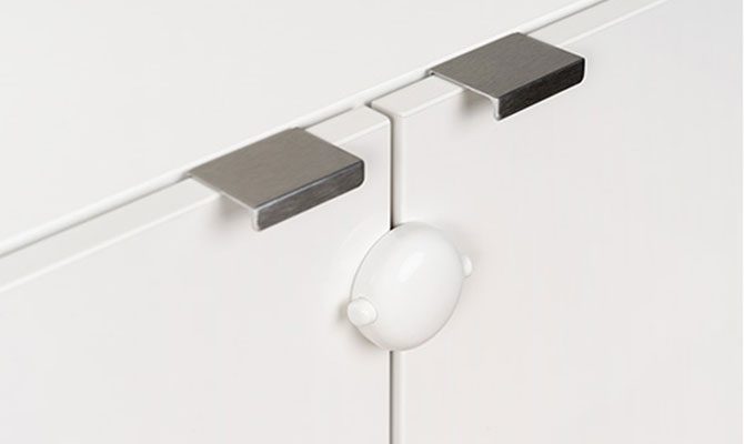 Spintelių ir stalčių turinys lieka saugiai užrakintas, tačiau suaugusieji lengvai gali atidaryti užraktą viena ranka. Komplekte taip pat rasite praktišką magnetinį sieninį laikiklį, ant kurio užraktą galima pakabinti, kai spintelė atidaryta. Raudona žyma primena vėl aktyvuoti užraktą, kai šalia yra vaikų.
