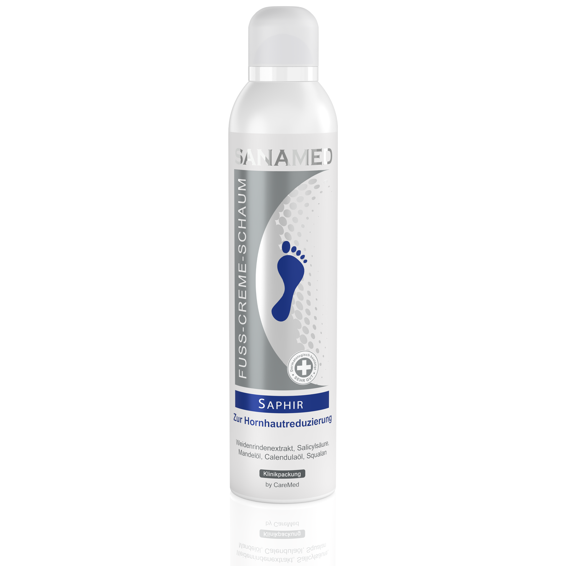 SANAMED Saphir kojų putų kremas yra greitai įsigeriantis putų kremas. Sudėtyje yra 10% šlapalo, glicerino, gluosnių žievės ekstrakto ir salicilo rūgšties. Šios lengvos tekstūros kremas-putos intensyviai prižiūri ir drėkina odą bei lėtina naujos suragėjusios odos susidarymą. Sudėtyje nėra PEG, kvapiklių ar dažiklių.