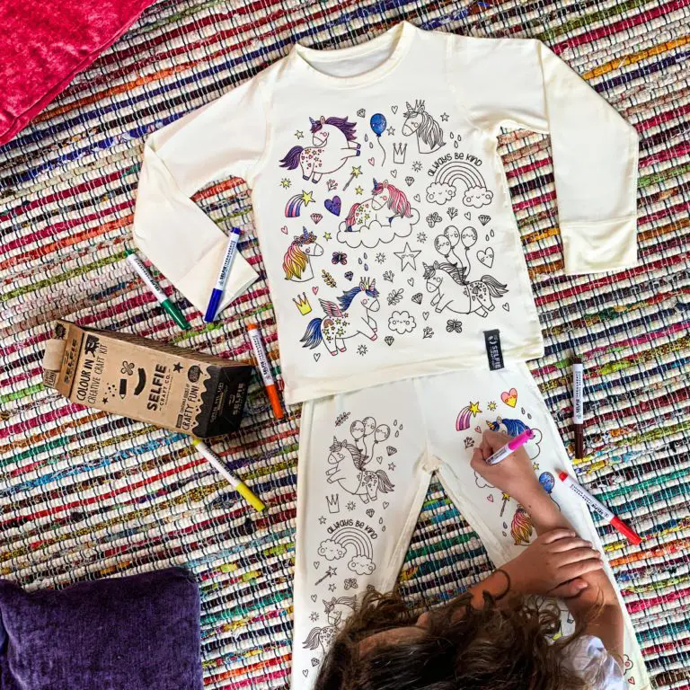 Paversk kiekvieną vakarą į nuotykį su Unicorn Colour-In pižama, kur vaikai patys gali susikurti savo svajonių pasaulį! Su pridėtais audinių flomasteriais jie gali nuspalvinti unikalų vienaragio dizainą, paversdami pižamą savo kūrybiniu šedevru. Tobulas kūrybinės veiklos ir patogaus naktinuko derinys.