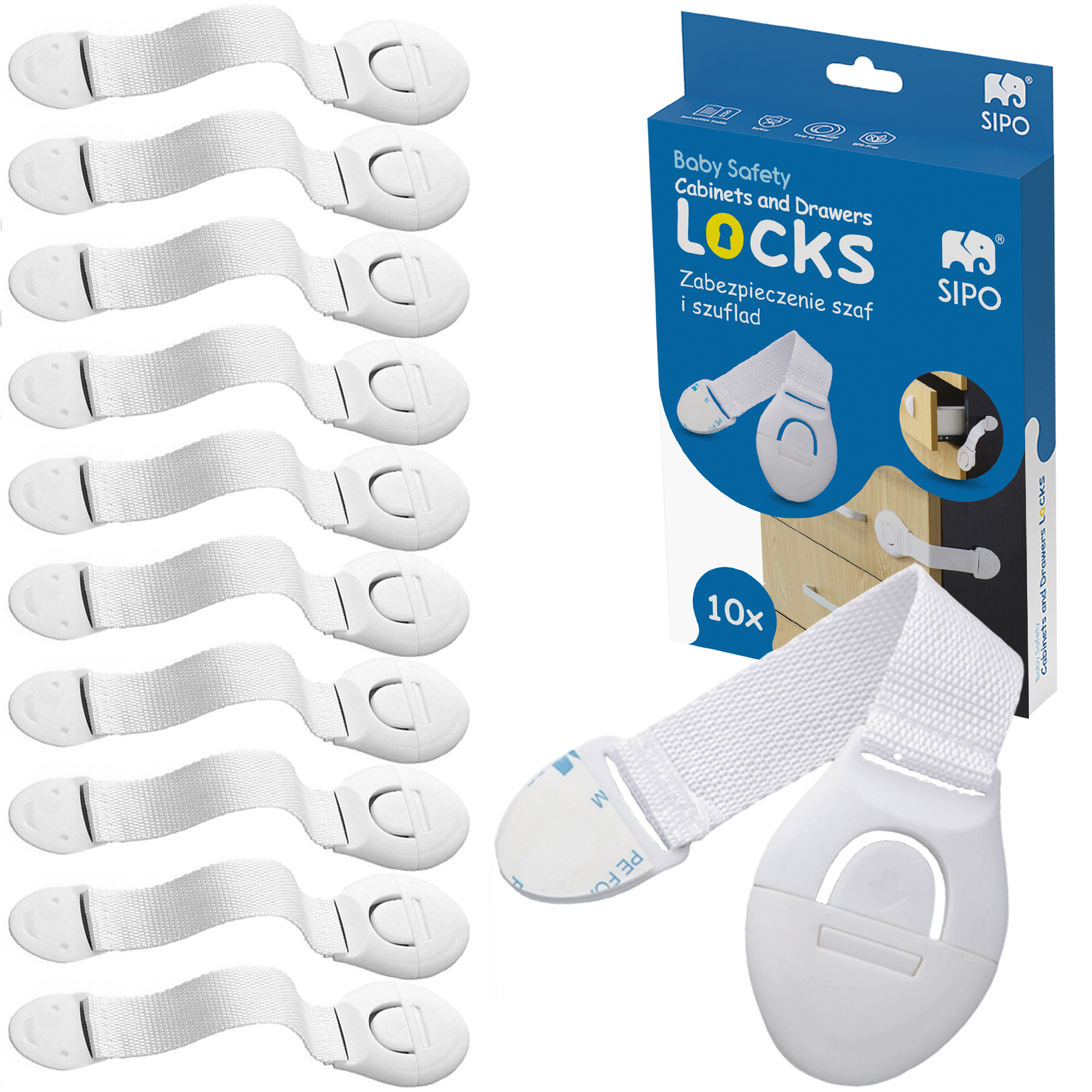 SIPO 6 dalių reguliuojamų spintelių užraktų rinkinys su lengvo fiksavimo funkcija, kuri užtikrina greitą suaugusiųjų prieigą, tačiau apsaugo nuo atidarymo mažiems vaikams. Užraktai turi reguliuojamo ilgio funkciją. Tai praktiškas ir paprastas sprendimas, užtikrinantis jūsų vaiko saugumą, nes užkerta kelią prieigai prie spintelėse ir stalčiuose laikomų pavojingų daiktų ar medžiagų.