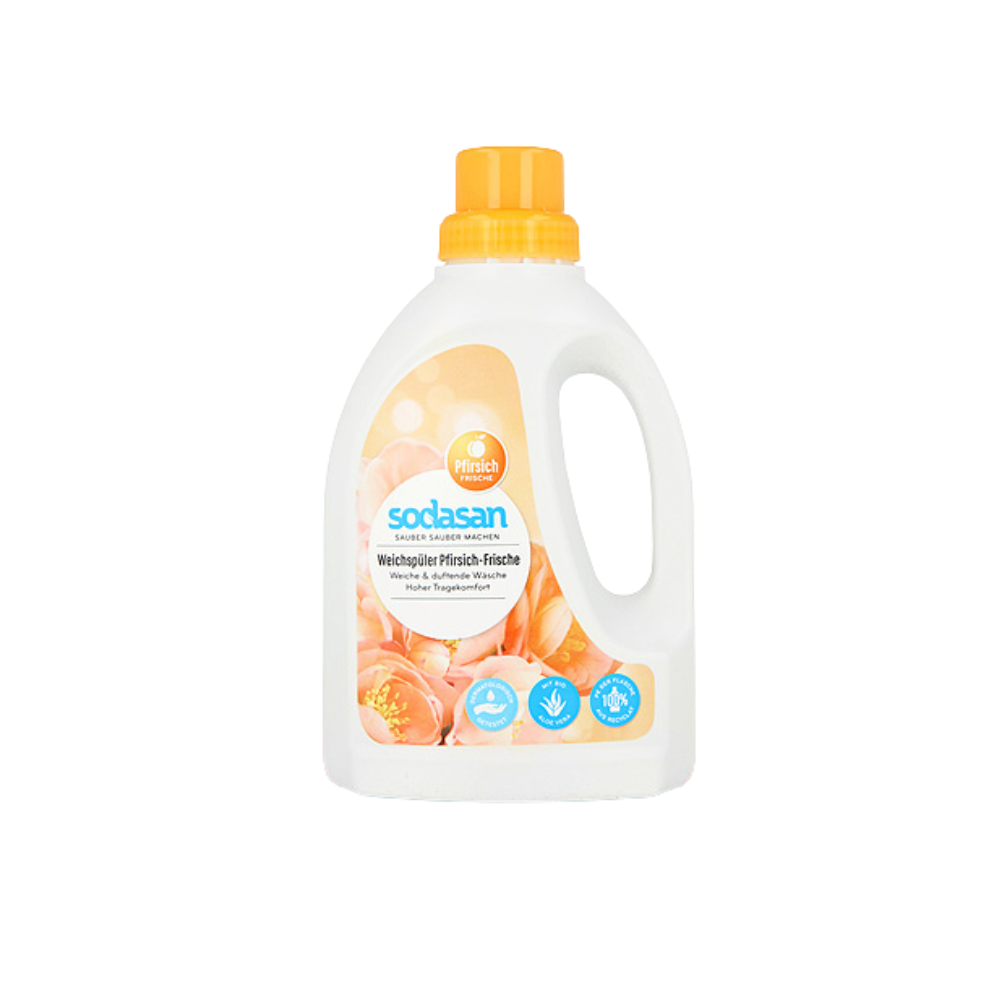 Sodasan Softener Peach suteikia jūsų skalbiniams švelnumo gaivumą ir persikų kvapą. Inovatyvi formulė su augaliniais ingredientais ir ekologiška alavijų vera suteikia audiniams malonų, švelnų nešiojimo komfortą. Ploviklio likučiai yra švelniai pašalinami. Tinka visų tipų pluoštams.