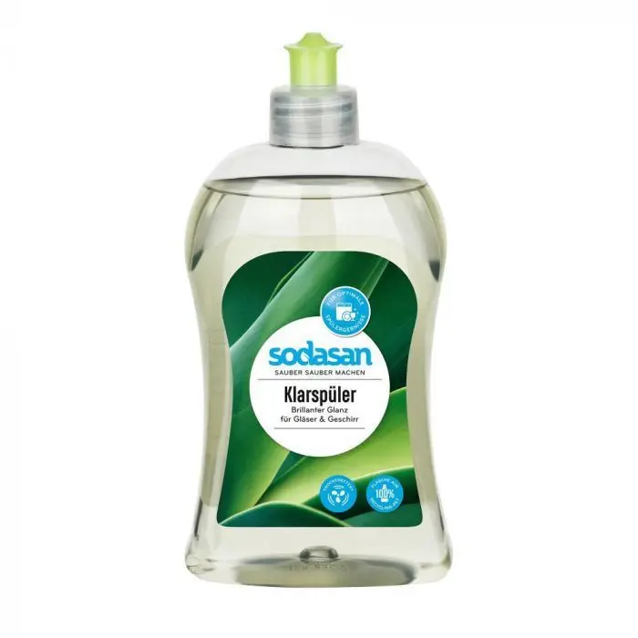 Sodasan skalavimo priemonė. Užtikrina puikų indų švarumą ir blizgesį be kalkių ir vandens dėmių. Dėl praktiško sandaraus dangtelio, skalavimo priemonė lengvai dozuojama į atitinkamą indaplovės skyrų.