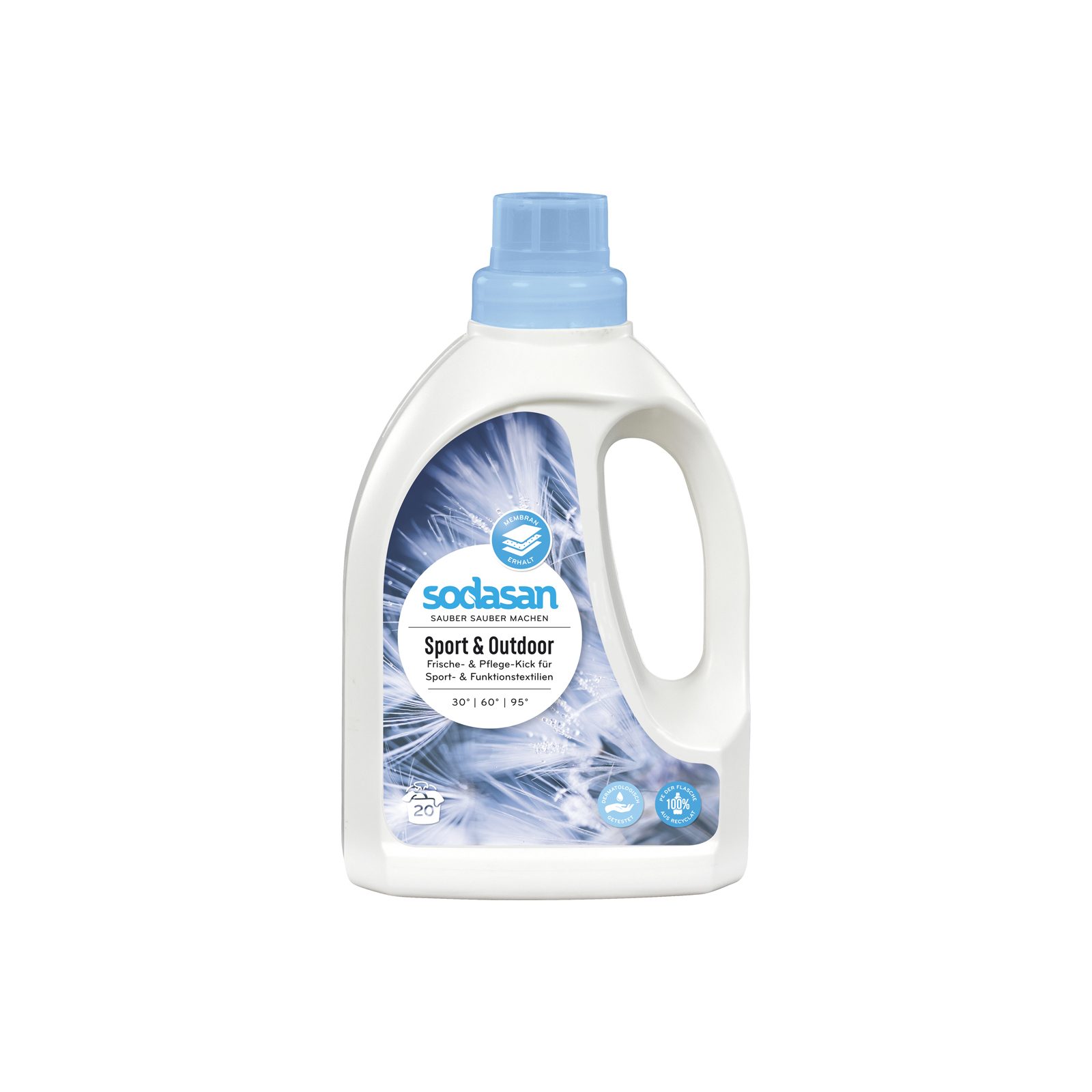 Sodasan Sports & Outdoor skalbimo gelis higieniškai išvalo funkcinius ir laisvalaikio drabužius. Užtikrina higienišką švarą sportinei aprangai skalbiant 30°C, 60°C ir 95°C temperatūroje. Tinka natūralių pluoštų ir specialių audinių, tokių kaip mikropluoštas ar membranos, priežiūrai. Sport & Outdoor skalbiklis neutralizuoja nemalonius kvapus ir suteikia drabužiams švelnaus gaivumo. Tinka tiek skalbimo mašinoms, tiek skalbiant rankomis. Sudėtyje nėra optinių baliklių. Nenaudokite audinių minkštiklių funkciniams drabužiams skalbti.