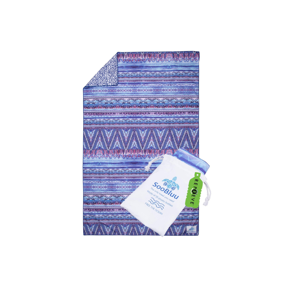 Greitai džiūstantis, stilingas paplūdimio rankšluostis su dvipuse spauda. Kiekvienam Shoresyde rankšluosčiui pagaminti buvo panaudota iki 20 iš vandenyno ar sausumos surinktų plastikinių butelių.
