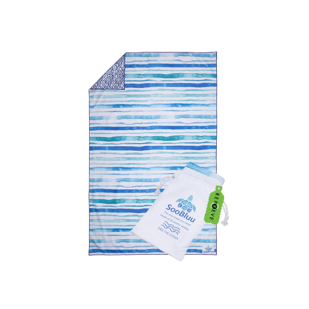 Greitai džiūstantis, dailus paplūdimio rankšluostis su dvipuse spauda. Kiekvienam Shoresyde rankšluosčiui pagaminti naudojama iki 20 iš vandenyno ar sausumos surinktų plastikinių butelių.
