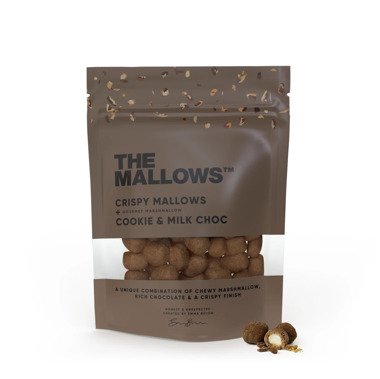 Kiekvienas zefyras kruopščiai pagamintas, užtikrinant tobulą minkštos vidinės dalies ir traškios išorinės plutelės pusiausvyrą. Švelnus vanilinis zefyro skonis susilieja su sodriu pieniško šokolado skoniu ir mažais, nepaprastai viliojančiais sausainių gabalėliais, suteikiančiais dar didesnį traškumą.