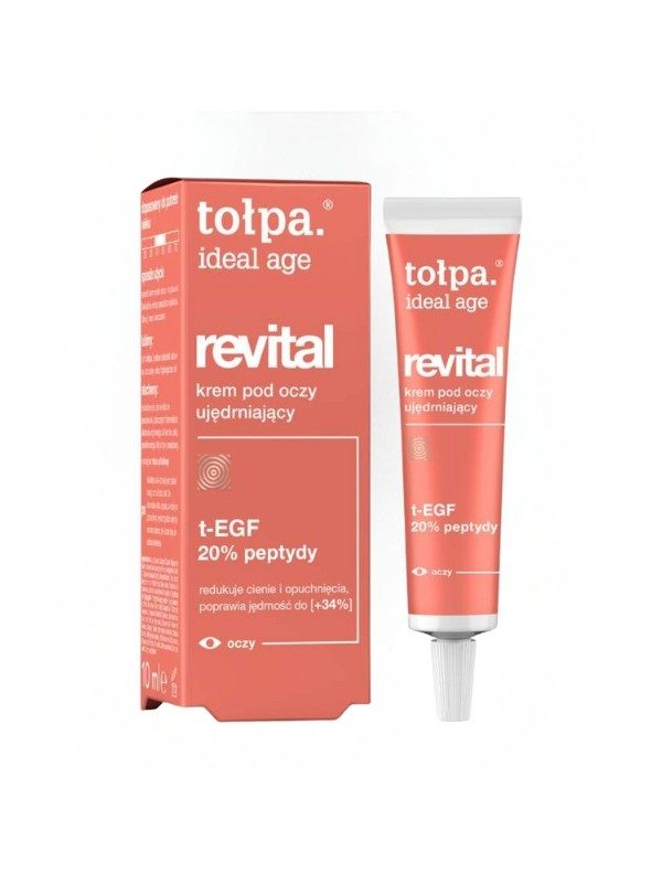 Tołpa Ideal Age Revital stangrinamasis akių kremas suteikia specializuotą priežiūrą subtiliai akių zonai. Jo pažangi formulė stangrina odą, mažina raukšlių atsiradimą ir lengvina paburkimą bei tamsius ratilus po akimis.