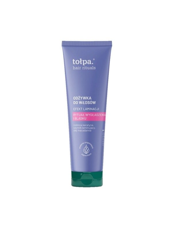 Tołpa Hair Rituals glotninamasis kondicionierius suteikia plaukams laminavimo efektą, padeda drėkinti, glotninti ir apsaugo nuo pažeidimų. Natūraliomis sudedamosiomis dalimis praturtinta formulė suteikia plaukams glotnumo, žvilgesio ir lengvina iššukavimą. Reguliarus naudojimas atkuria plaukų sveiką išvaizdą ir blizgesį bei padeda sumažinti pasišiaušimą. Tinka kasdieniam naudojimui visų tipų plaukams.