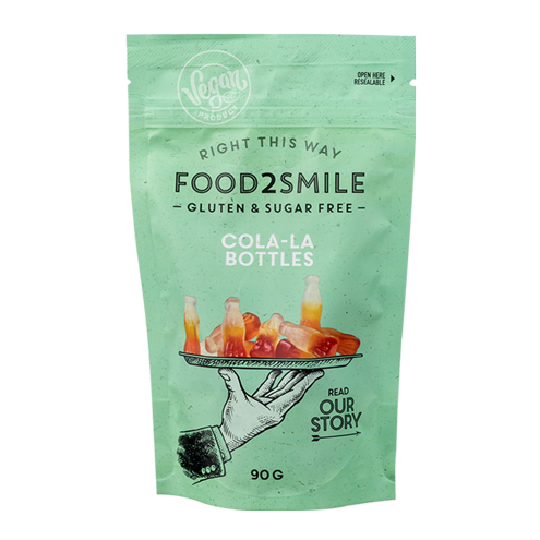 Skani guminukai be cukraus kolos butelių formos nukels jus tiesiai į vaikystę! Klasikinis kolos skonis, bet be cukraus – veganiški, be glitimo ir halal. Minkšti kramtomi, puikus skanėstas tiems, kurie nori mėgautis vaikystės mėgstamais saldumynais šiuolaikiškiau ir sveikiau.