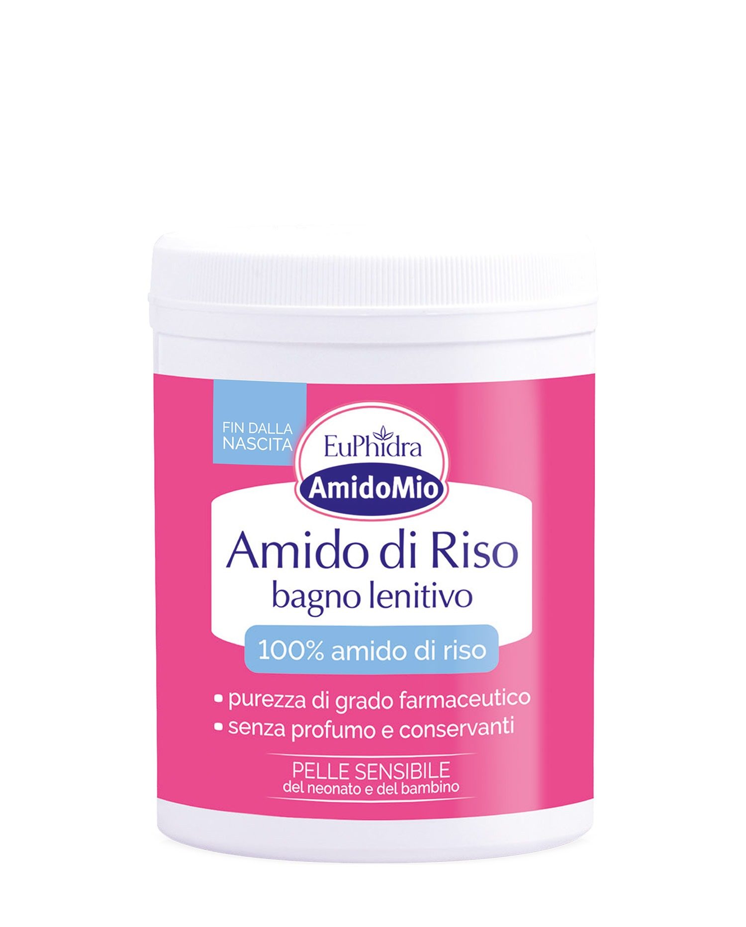 AmidoMio ryžių krakmolas yra specialiai sukurtas drėkinamosioms vonioms, kad ramintų ir apsaugotų subtilią odą. Tirpstant vandens vonioje, milteliai sukuria švelnų pienišką vandens sluoksnį, kuris padengia odą lengvu apsauginiu sluoksniu, apsaugodami nuo sausumo ir mažindami aplinkos veiksnių poveikį odai.