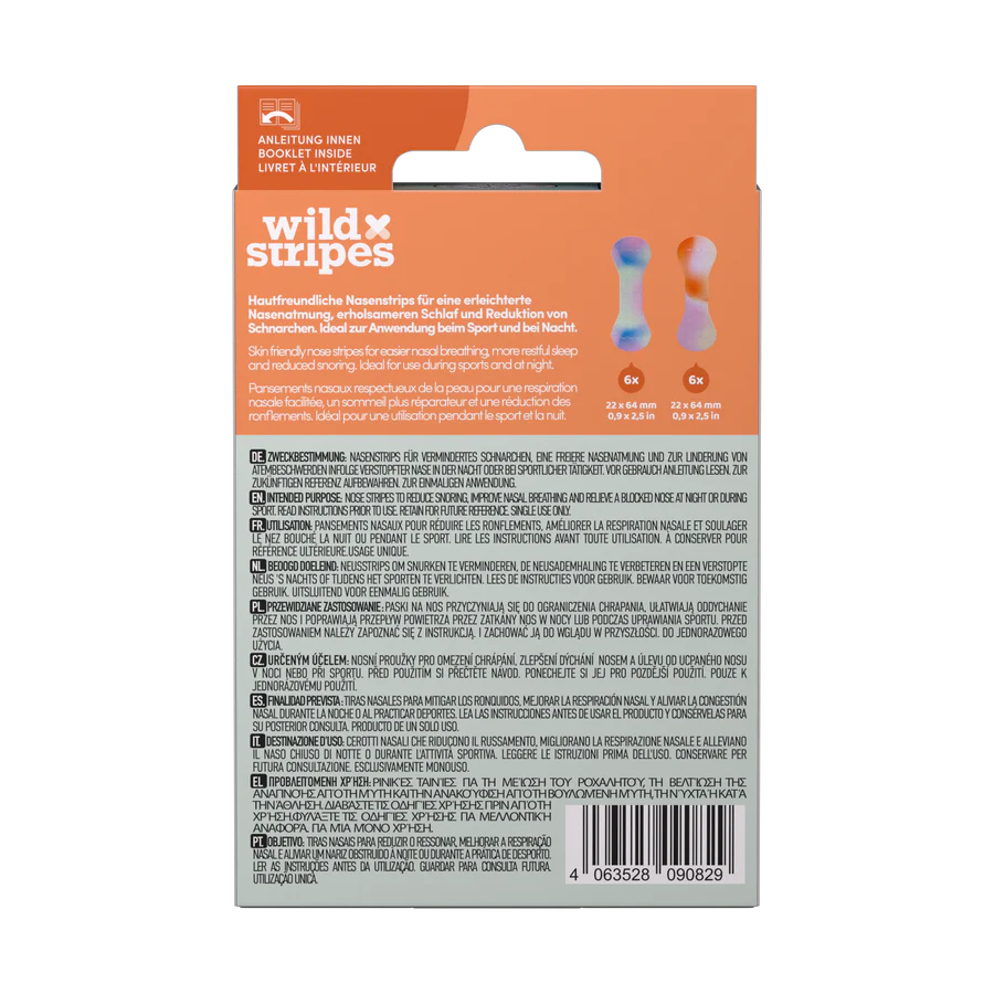 Kvėpuokite lengviau ir miegokite geriau su „Wild Stripes® Sunrise” nosies juostelėmis! Šios medicininės nosies juostelės yra specialiai sukurtos tam, kad pagerintų nosies kvėpavimą, sumažintų knarkimą ir palaikytų gilesnį, gaivesnį miegą. Nepriklausomai nuo to, ar miegate naktį, ar sportuojate, šios nosies juostelės padeda laisviau kvėpuoti ir padidina kūno su deguonimi prisotinimą.