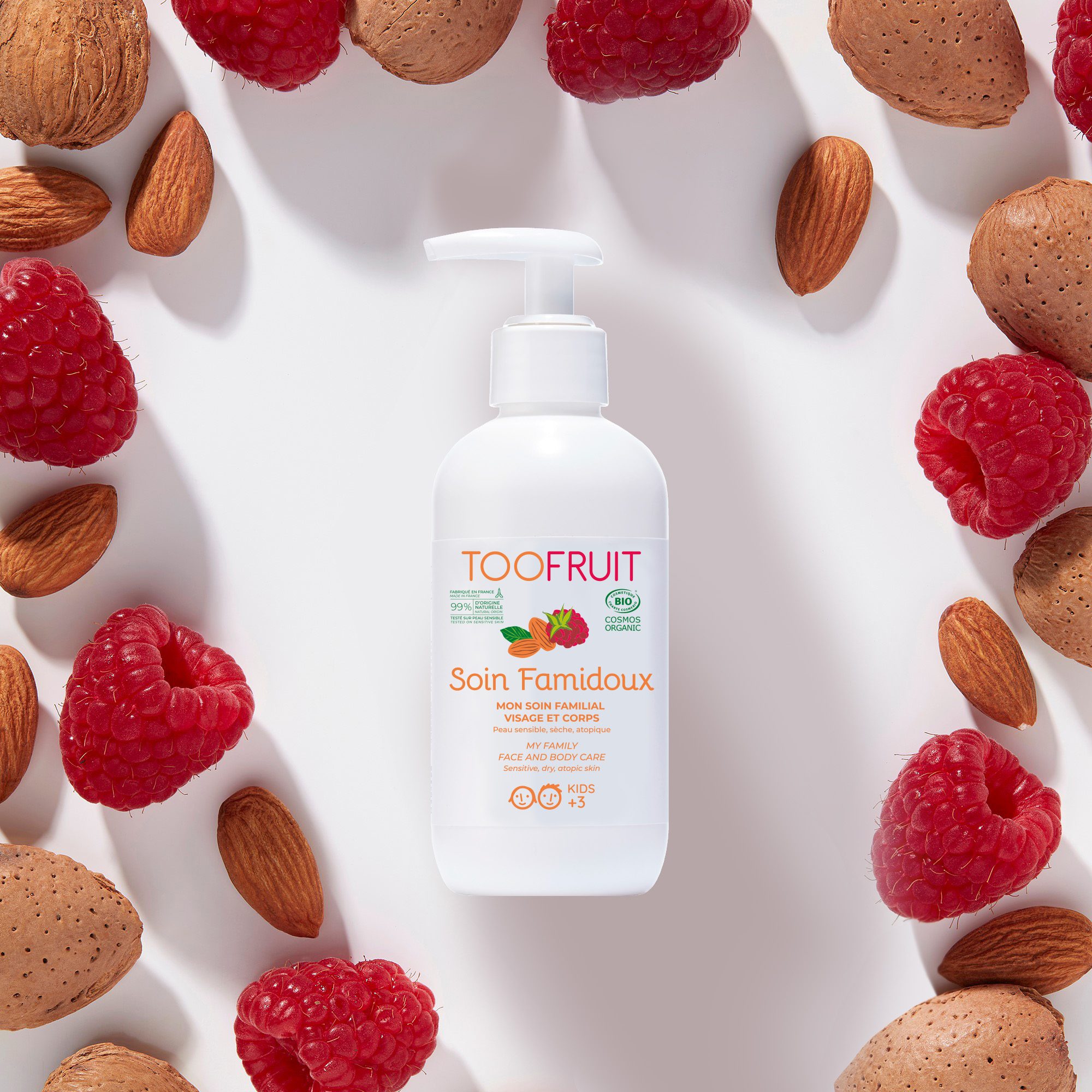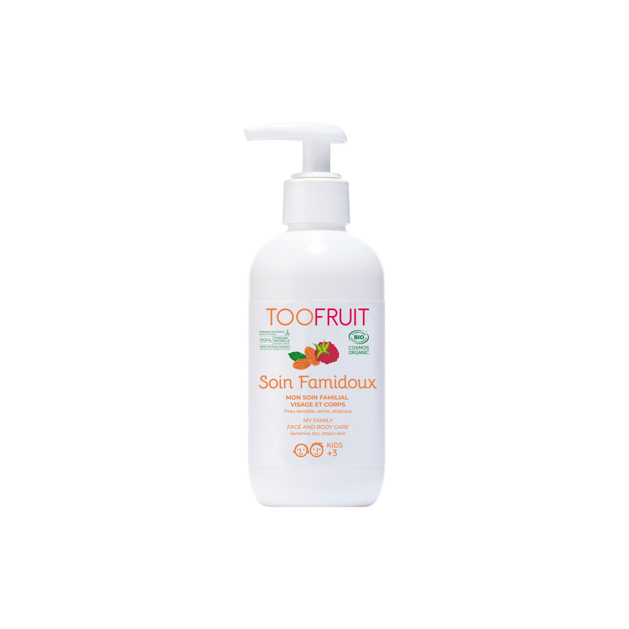 Soin Famidoux yra sertifikuotas ekologiškas veido ir kūno kremas, sukurtas jautriai, sausai ir atopinei odai. Jo lengva, pieno ir balzamo tekstūra greitai įsigeria nepalikdama riebaus sluoksnio, suteikdama neatidėliotiną švelnumo ir komforto pojūtį. Aukštos tolerancijos formulė derina švelnų aviečių vandenį, saldžiųjų migdolų aliejų, taukmedžio sviestą ir raminantį bisabololį, kuris padeda sumažinti odos tempimą, niežėjimą ir dirginimą. Tinka visai šeimai nuo 3 metų amžiaus.