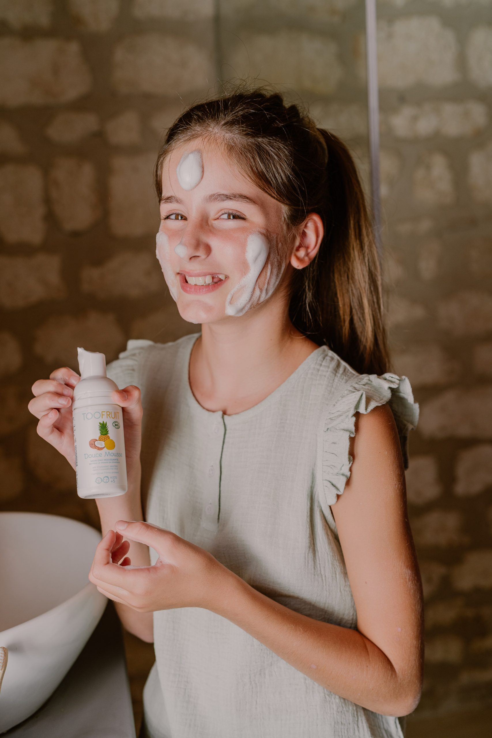 Naudojimas: Nusiplaukite rankas. Išspauskite putų ant delnų, paskirstykite per veidą, tada nuplaukite vandeniu ir nusausinkite veidą rankšluosčiu. Po putų rekomenduojame naudoti TOOFRUIT veido kremą.