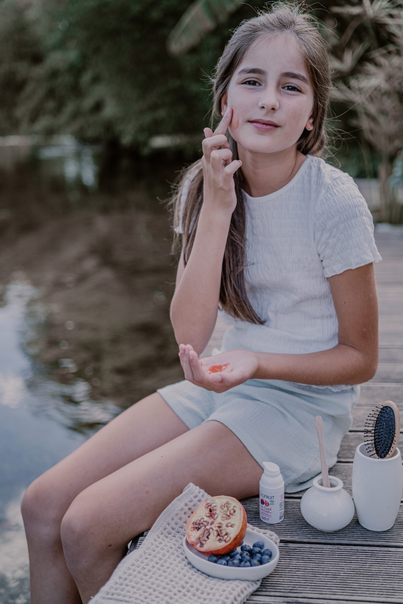 Ekologiškas drėkinamasis ir gaivinamasis gelis tinka vaikams su problemine oda paauglystės metu arba odos atgaivinimui vasaros laikotarpiu. Kremas sudėtyje turi mėlynių ir granatų ekstraktų, kurie drėkina ir gaivina odą.