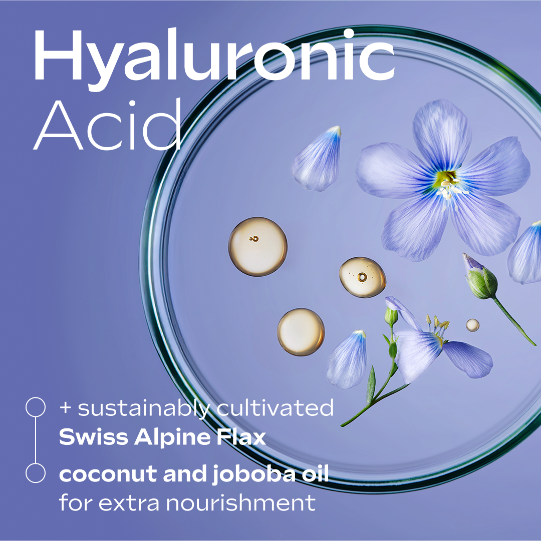 – Praturtintas giliai drėkinančia hialurono rūgštimi ir alpių linų ekstraktu