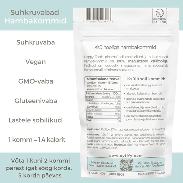Tinkamumas: Dantų saldainiai tinka tiek vaikams, tiek suaugusiems. Ksilitolis yra svarbi kasdienės burnos higienos rutinos dalis, kurią rekomenduoja dantų gydytojai ir teikia džiaugsmą visai šeimai.